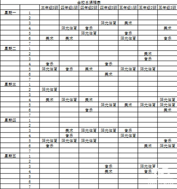 晒课表 | beat365中国唯一官网体育美育课表