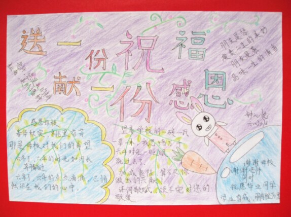 通过活动的开展,孩子们在回忆和留恋中又一次体会到了老师的关怀和同学的友谊,缓解了毕业班学生紧张的学习生活,使校园内外掀起了一股感恩老师的浓厚氛围,也增加了同学之间的深厚友谊,希望他们都能带着感恩的心出发,向着梦想前进,走的更远、飞得更高。