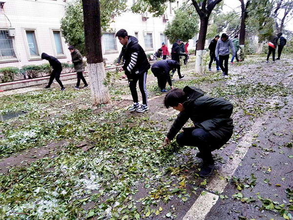 师生齐动手 天寒人心暖