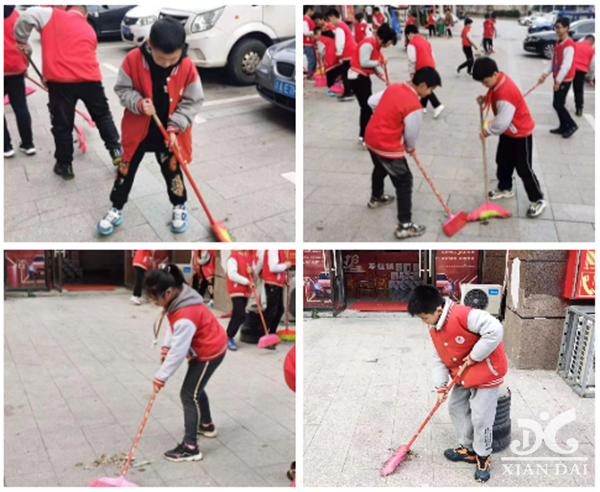 当天下午第三节课,在学部政教处喻主任及邓老师的带领下,五六年级的30位同学,拿着扫把、铲子等工具,认真对学校周边小区门前垃圾进行清扫。不仅美化了辖区内的环境卫生,也激发了学生践行雷锋精神的热情。