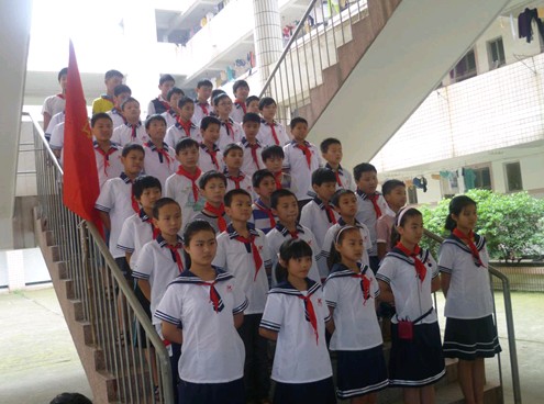 活动当天,少先队员们戴着鲜艳的红领巾,排着整齐的队伍,个个精神饱满。根据活动流程,先由各少先队中队长向大队辅导员报告参加活动人数,请示活动开始,然后出旗,唱队歌,整个活动按照三大块进行:一、一年级新队员入队仪式;二、表彰三好学生、优异队员;三、“歌声飞出心窝窝”歌咏比赛。
