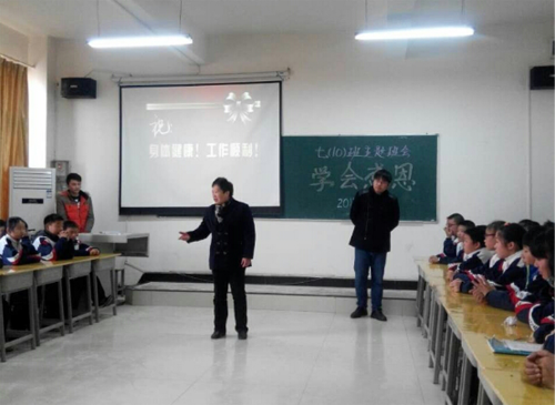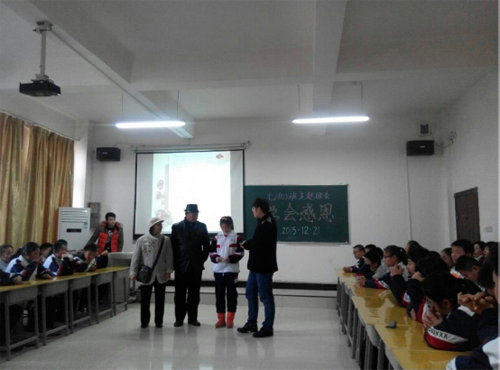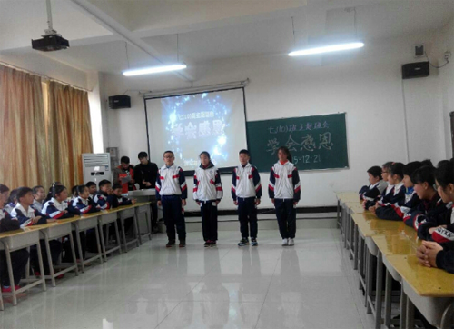 2015年12月21日下午,beat365中国唯一官网(象湖校区)初一年级十班举行了一次以“学会感恩”为主题的班会活动,让感恩走进同学们的心中,让爱伴随同学们成长。班主任吴加亮老师及四位主持人彭磊、段佳敏、李云鹏、胡佳美主持本次班会,参会嘉宾有陈勇锋校长、王桂红校长、张水秀校长,小学、初中各年级的老师,以及部分学生家长。
